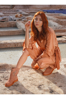 Boho western laarsje in een warme kleur desert pink; confetto, Met mooie bohemian details. Nog even geduld; we verwachten ze in de week van 29-04/ 03-05