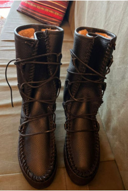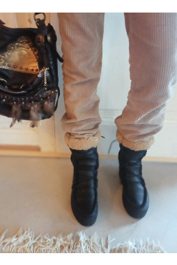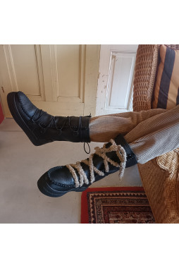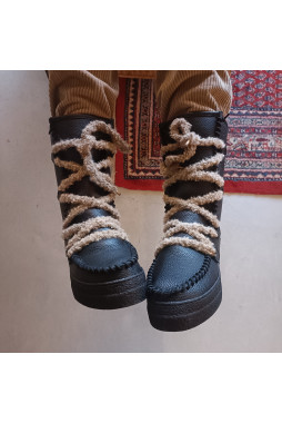 ♥ Hoge leren laars met zwart leren of camel kleur katoenen veters.♥ De kleur is zwart.♥ De laars heeft 2 verschillende veters om zelf te customizen.♥ Met warm en comfortabel schapenwol gevoerd.♥ Herfst/winter.♥ Handmade in Italy.