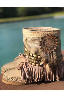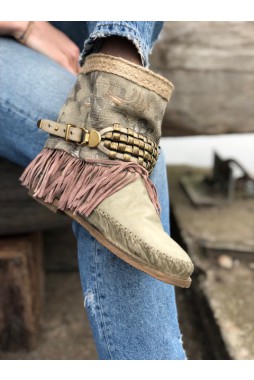 ♥ Medium hoog laarsje met roze franjes, riem en karma logo