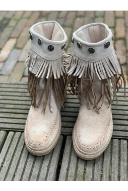 ♥ Korte laars met een sneaker zool, studs op de schacht met 2 lagen franjes.♥ Lente/zomer. ♥ Handgemaakt in Italie.