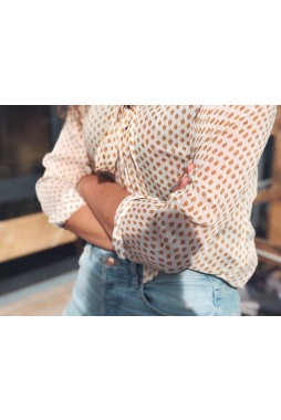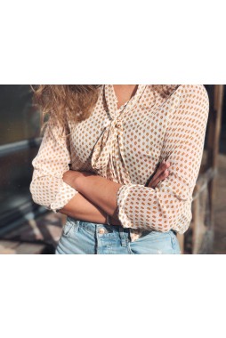 Dè trend van 2017 en 2018, see through bow blouses. Met deze blous ben jij helemaal hip maar toch classy. Zowel in het voorjaar als najaar te dragen. Het mini triangle printje maakt deze blouse helemaal uniek.