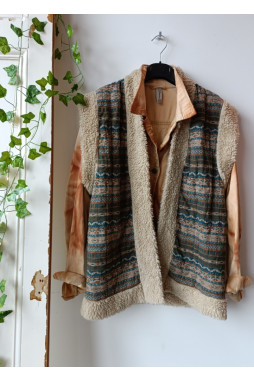 Mooie print in winterse tinten en heeft zachte bont accenten. Super om over je eigen biker- of jeansjack te dragen voor een upgrade.