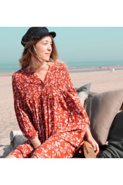 ♥ 100% Katoen♥ Rood met kleine witte bloemen♥ Lente / Zomer