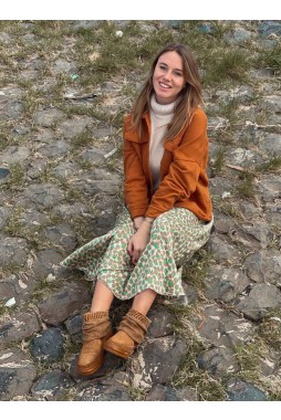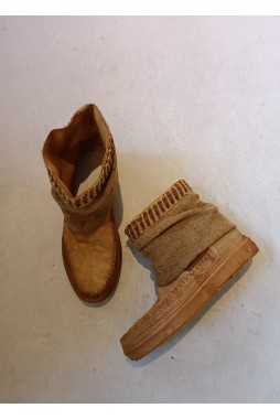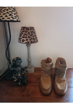 ♥ Kort, casual laarsje met een sneaker zool. Aan de bovenzijde is katoen/linnen materiaal verwerkt.